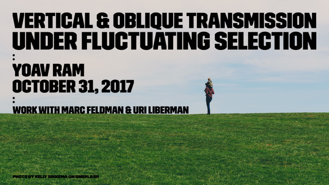 Oblique transmission occurs when a trait is passed to offspring from non-parental members of the parental generation. This can occur, for example, via social learning, mobile genetic elements, epigenetics, and the microbiome. We (i.e. Drs Ram, Uri Liberman, and Marcus Feldman) developed a model in which both vertical (i.e. from parent to offspring) and oblique transmission occur in a population evolving under fluctuating selection. Our analytical and numerical results highlight scenarios in which oblique or vertical transmission are likely to evolve; surprisingly, in some cases, oblique transmission does not evolve, even though it increases population mean fitness. We also examine the effect of the transmission mode on maintenance of diversity in the population.