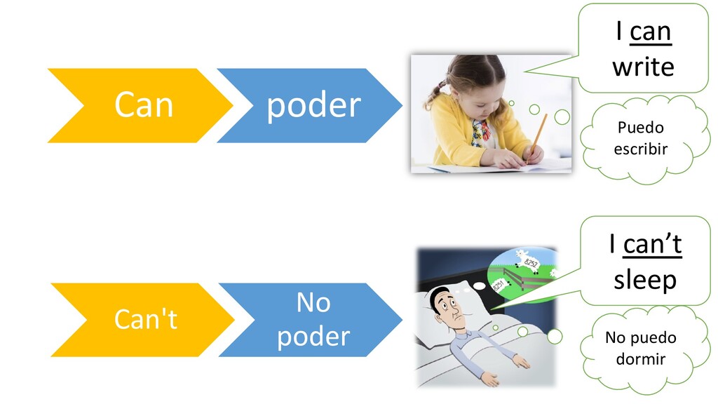 dormir I can write Puedo escribir