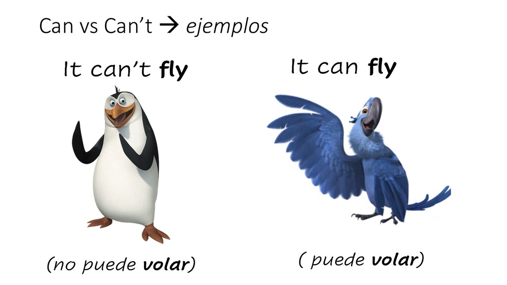 Can vs Can’t à ejemplos It can’t fly (no puede