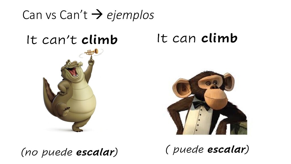 Can vs Can’t à ejemplos It can’t climb (no puede