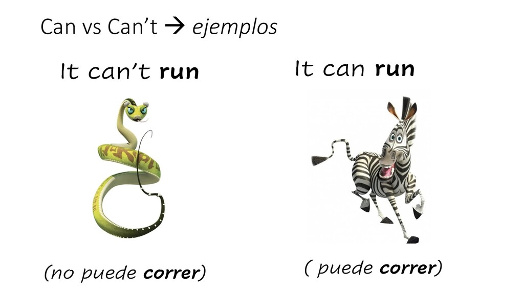 Can vs Can’t à ejemplos It can’t run (no puede