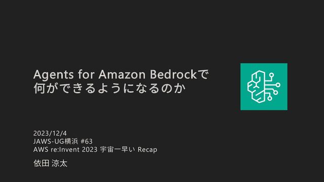 Bedrock Agents for Amazon Bedrockを活用した構成 Action Group APIスキーマ ナレッジをクエリ 文章理解・生成 特定のタスク実行 • Agentsがユーザからのリクエストを理解し、具体的なアクションを計画 計画をもとに各種サービスから情報を取得し、より適切な情報をユーザに応答可能 • Knowledge Base for Amazon Bedrockと簡単にシームレスに接続。RAG構築が容易に • Action Groupで特定のタスク実行が可能に 構成のポイント