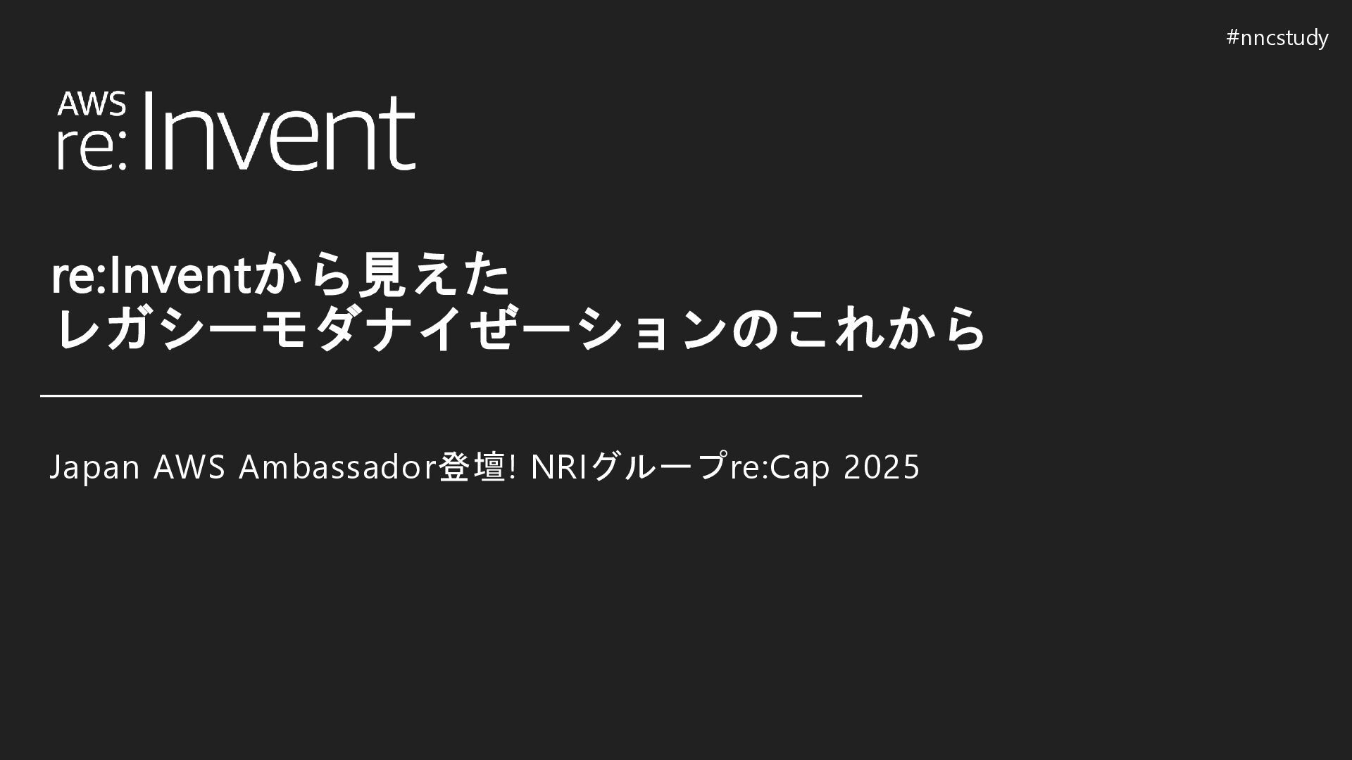 re:Inventから見えた レガシーモダナイぜーションのこれから Japan AWS Ambassador登壇! NRIグループre:Cap 2025 #nncstudy
