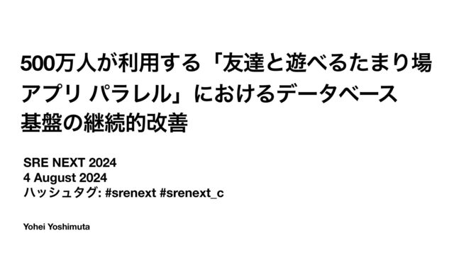 このセッションでは、『パラレル』がこれまで経験してきた障害とその対応策、そしてポストモーテムを通じて、どのようにデータベース基盤の耐障害性と安定性を向上させてきたのかについて詳しくお話しします。具体的な実装については、MySQL、Semian、Toxiproxy、Vitessを例に挙げて解説する予定です。