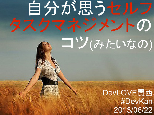 自分が思うセルフ タスクマネジメントの コツ(みたいなの) DevLOVE関西 #DevKan 2013/06/22