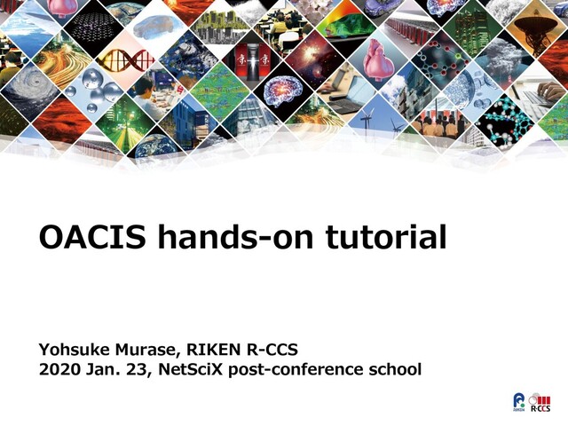 l how to submit your jobs using OACIS l Hands-on session 2 l how to integrate your program (such as jupyter notebook) into OACIS l Hands-on session 3 l how to automate your workflow We are not telling you how to install OACIS today. The official document is available at http://crest-cassia.github.io/oacis/