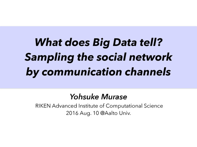 (2005) • Stumpf et al., Phys. Rev. E (2005) • Han et al., Nat. Biotech. (2005) • Lee et al., Phys. Rev. E (2006) • Costa et al., Phys. Rev. E (2007) random node/link sampling snowball sampling random link sampling (k=50 → 3) 0 500 1000 1500 2000 2500 0 2 4 6 8 10 12 14 P(k) k Random sampling does not explain why we have a decreasing P(k) so widely.