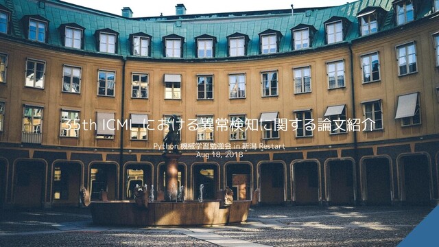 et al., "Deep One-Class Classification" 変化検知(change point detection) • Knoblauch, J., et al., "Spatio-temporal Bayesian On-line Changepoint Detection with Model Selection"c • Mazhar, O., et al., "Bayesian Model Selection for Change Point Detection and Clustering" • Boracchi, G., et al., "QuantTree: Histograms for Change Detection in Multivariate Data Streams" 3