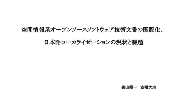 空間情報系オープンソースソフトウェア技術文書の国際化、 日本語ローカライゼーションの現状と課題 嘉山陽一 古橋大地
