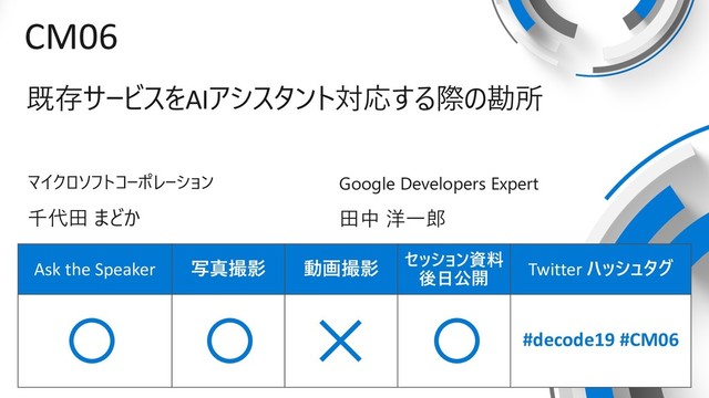 de:code 2019 にてセッション「CM06 既存サービスを AI アシスタント対応する際の勘所」で使用したスライドです。