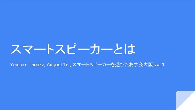 スマートスピーカーとは Yoichiro Tanaka, August 1st, スマートスピーカーを遊びたおす会大阪 vol.1