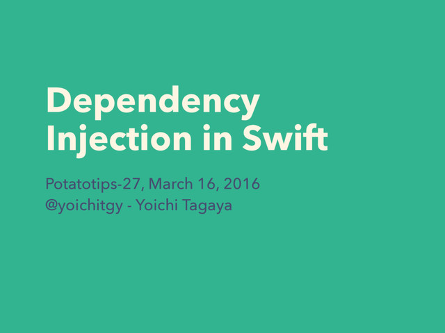 http://qiita.com/yoichitgy/items/ed8aac4d6f1e6666a4aa • Dependency Injection in Swift (Tokyo iOS Meetup) https://speakerdeck.com/yoichitgy/dependency-injection-in-swift • Unit Testing in Swift: Dependency Injection https://www.natashatherobot.com/unit-testing-swift-dependency-injection/ • DI in Scala: Cake Pattern pros & cons http://www.warski.org/blog/2011/04/di-in-scala-cake-pattern-pros-cons/ • You Used To Inject Me In Your Constructor (Reader Monad) https://speakerdeck.com/mathonsunday/you-used-to-inject-me-in-your-constructor