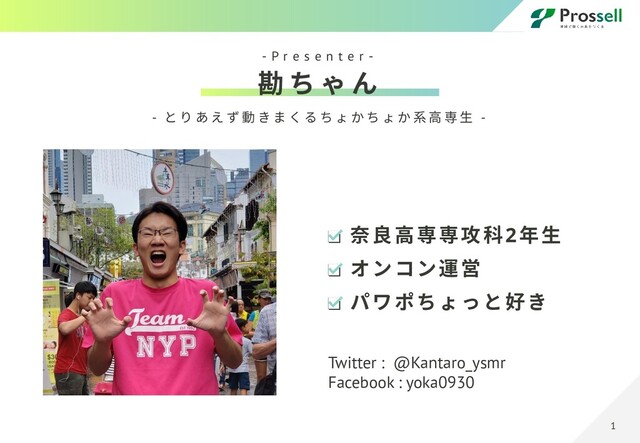 r - - と り あ え ず 動 き ま く る ち ょ か ち ょ か 系 高 専 生 - 勘 ち ゃ ん 奈良高専専攻科2年生 オンコン運営 パワポちょっと好き Twitter : @Kantaro_ysmr Facebook : yoka0930
