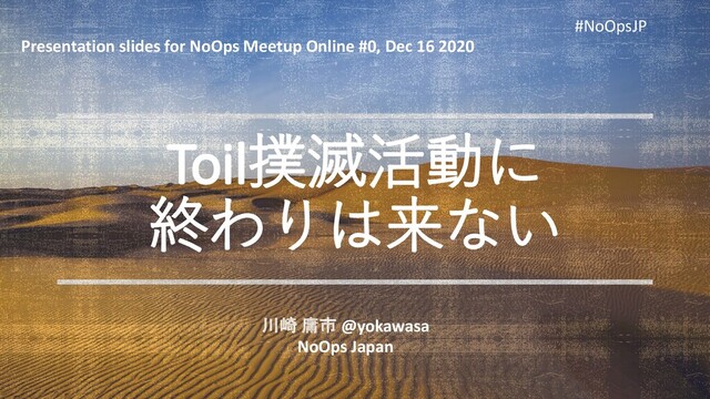 running a production service that tends to be manual, repetitive, automatable, tactical, devoid of enduring value, and that scales linearly as a service grows. Toil 説明 Manual (手作業) 手動作業。手動でスクリプト起動することもToil Repetitive (繰り返し行うこと) 新しい解決策や発明がなく、繰り返される作業 Automatable(自動化できること) 自動化できない人の判断を要することはToilではない Tactical(割り込み、受け身の作業) Strategicでない、突発的に発生するアラート、オンコール対応 No enduring value(永続的価値がない) 次の改善や価値に繋げられない作業 O(n) with service growth(線形増加) サービス成長、ユーザ数など応じて線形増加する作業 Chapter 5 - Eliminating Toil in Google SRE Book