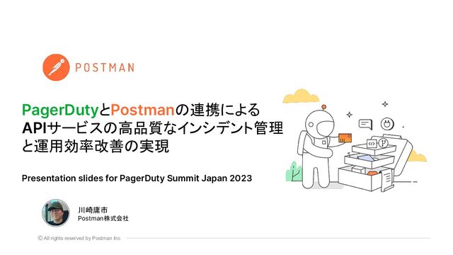 Presentation Slides for PagerDuty Summit Japan 2023 (2023.07.26) LT Session Title: PagerDutyとPostmanの連携によるAPIサービスの高品質なインシデント管理と運用効率改善の実現