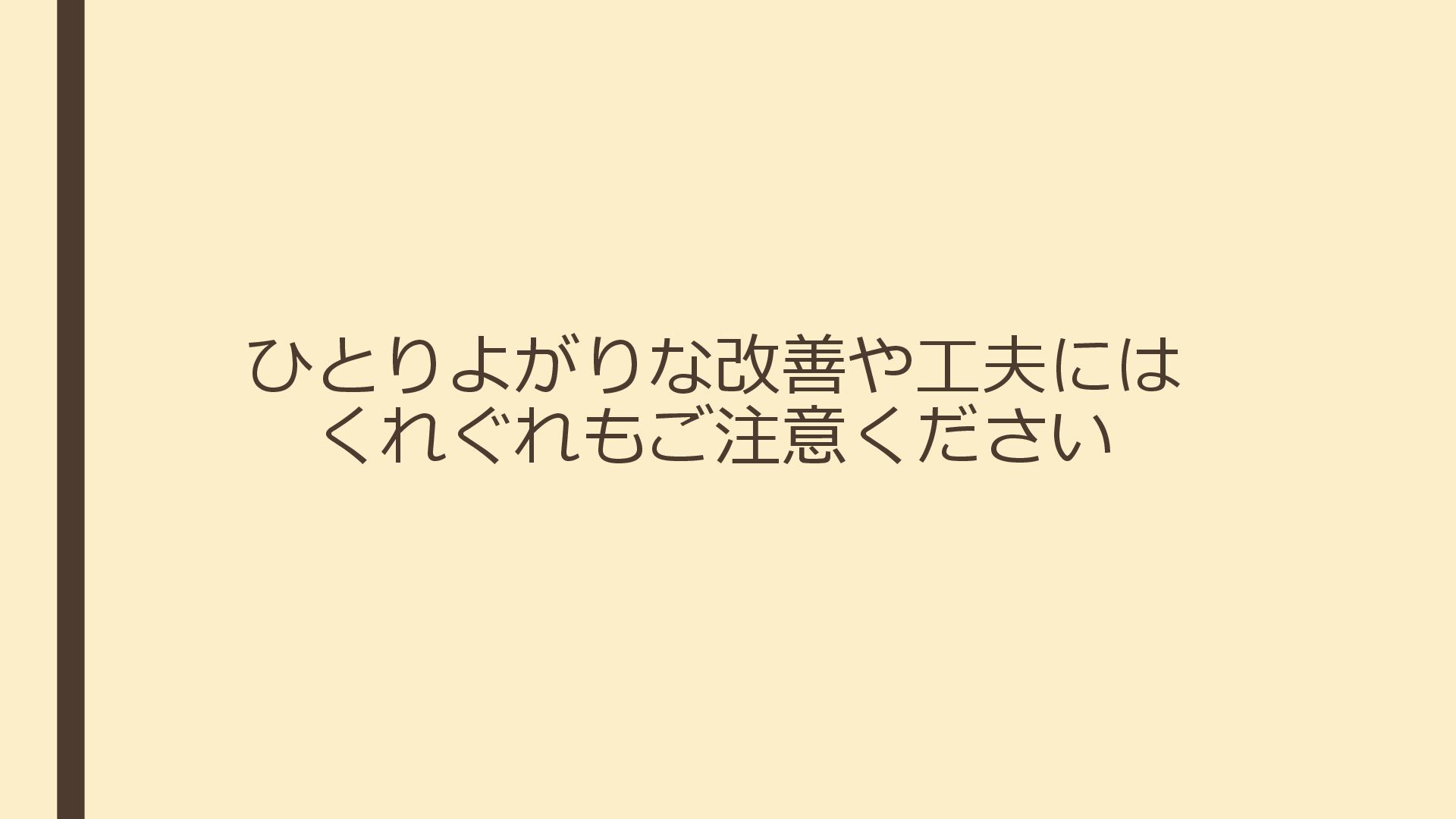 ひとりよがりな改善や工夫には くれぐれもご注意ください