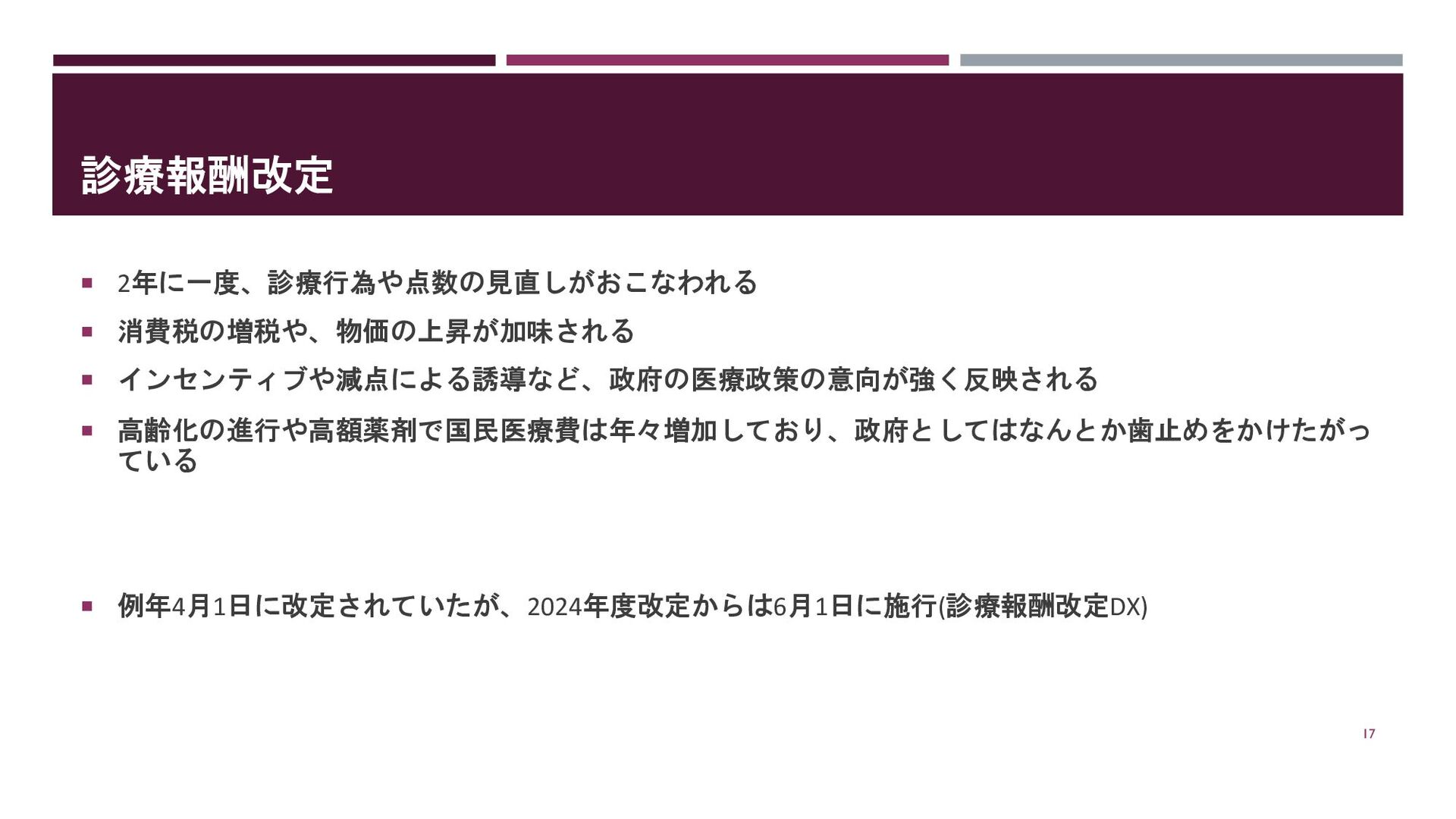 例年4月1日に改定されていたが、2024年度改定からは6月1日に施行(診療報酬改定DX) 17