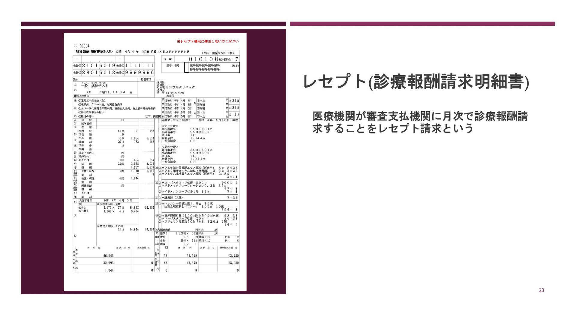レセプト(診療報酬請求明細書) 医療機関が審査支払機関に月次で診療報酬請 求することをレセプト請求という 23