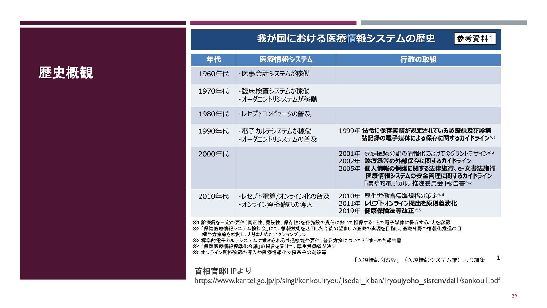 歴史概観 29 首相官邸HPより https://www.kantei.go.jp/jp/singi/kenkouiryou/jisedai_kiban/iryoujyoho_sistem/dai1/sankou1.pdf