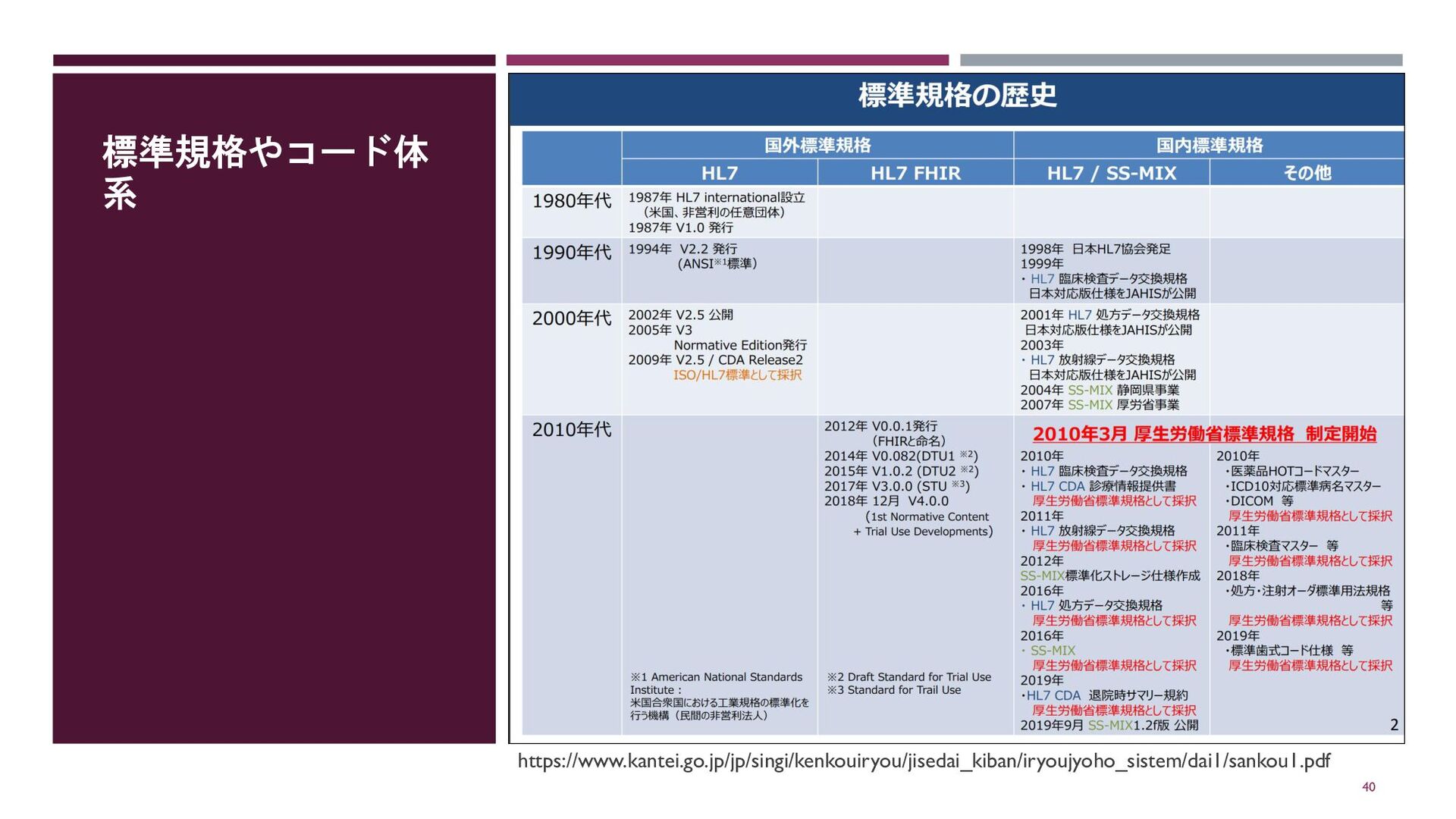 標準規格やコード体 系 40 https://www.kantei.go.jp/jp/singi/kenkouiryou/jisedai_kiban/iryoujyoho_sistem/dai1/sankou1.pdf