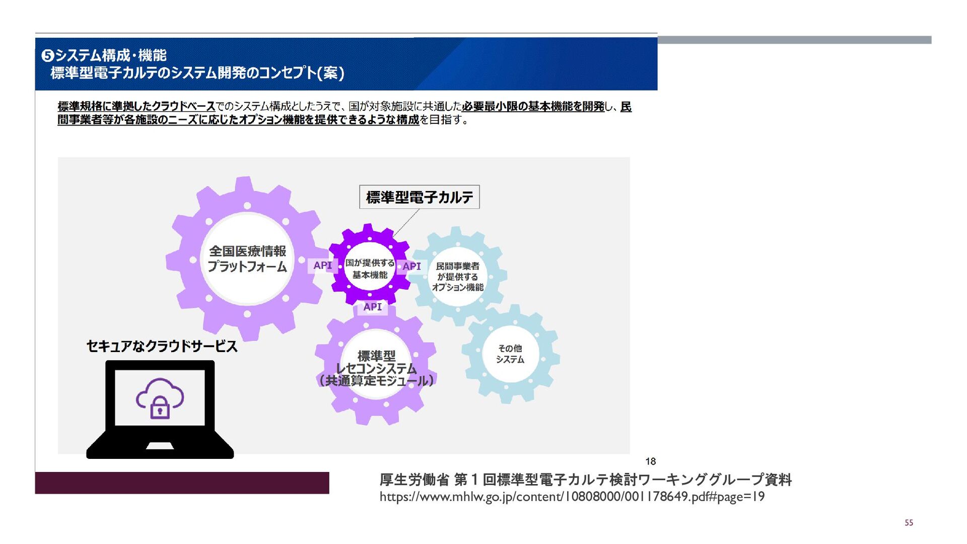 55 厚生労働省 第1回標準型電子カルテ検討ワーキンググループ資料 https://www.mhlw.go.jp/content/10808000/001178649.pdf#page=19