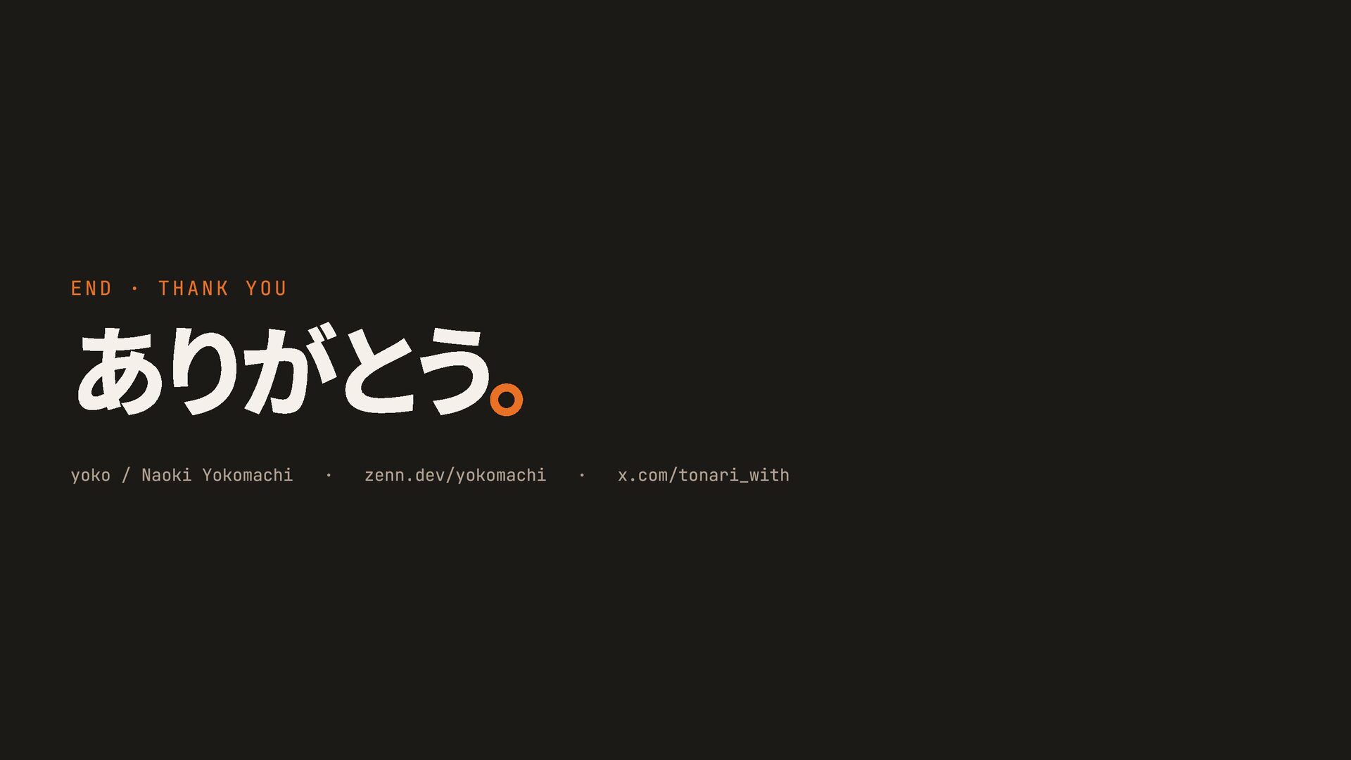 11. END · THANK YOU ありがとう。 yoko / Naoki Yokomachi ·