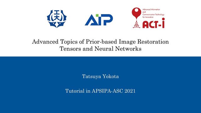 organizers of APSIPA ASC 2021 and all participants!! In this tutorial, I tried to summarize prior-based image restoration methods from multiple perspectives: classical methods (sparseness, smoothness, and non-local similarity priors), tensor methods, and neural network methods. In my opinion, two important points in the study of image restoration are a technical viewpoint about the behavior of mathematical models and optimization algorithms a realistic viewpoint for digging into the essential nature of images I hope this tutorial helps your study in the future. Basics Tensors Neural Nets