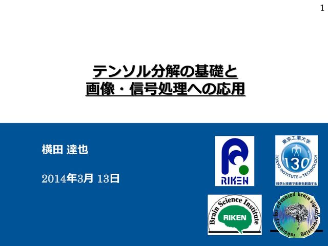 「テンソルデータ解析の基礎と応用」(コロナ社)の出版記念ということで10年前(D卒直前)の若気の至りスライドをアップします! https://www.coronasha.co.jp/np/isbn/9784339014075/