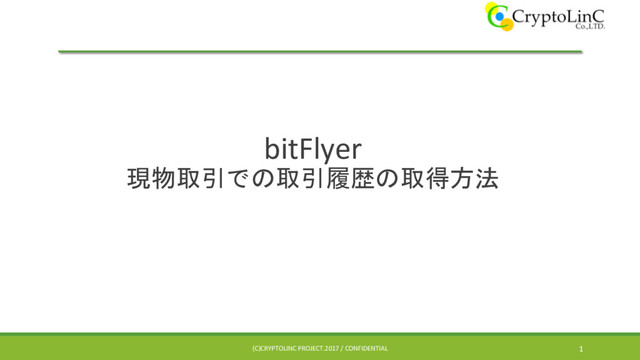 bitFlyer (C)CRYPTOLINC PROJECT.2017 / CONFIDENTIAL 1