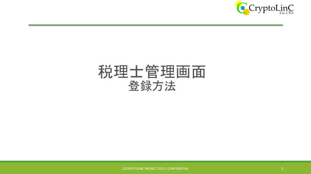 税理士管理画面 登録方法 (C)CRYPTOLINC PROJECT.2017 / CONFIDENTIAL 1
