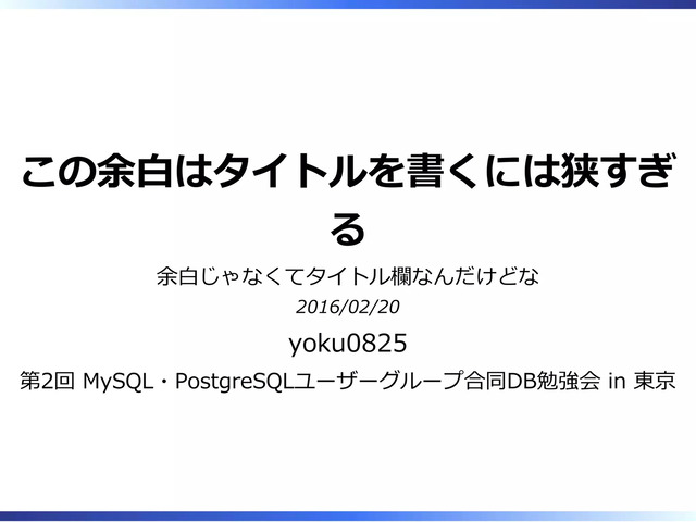 2016/02/20 第2回 MySQL・PostgreSQLユーザーグループ(MyNA・JPUG)合同DB勉強会 in 東京