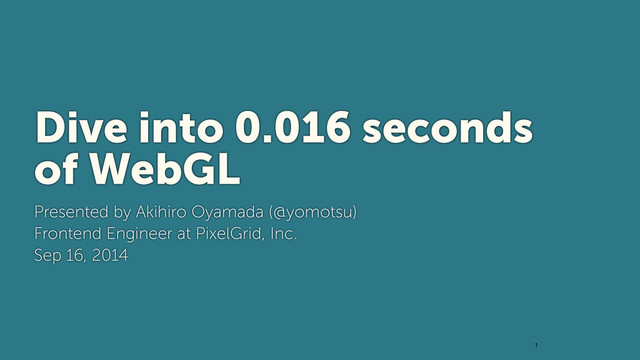 1 Dive into 0.016 seconds of WebGL Presented by Akihiro