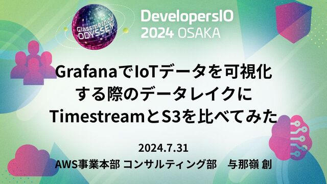 GrafanaでIoTデータを可視化 する際のデータレイクに TimestreamとS3を⽐べてみた 2024.7.31 AWS事業本部 コンサルティング部 与那嶺 創