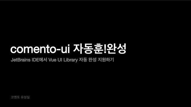 입력해야만 자동 완성이 됨 해결 방법: 컴포넌트명에 C 추가하기 Vue 스타일 가이드에서 컴포넌트명은 단어 하나만 사용하지 말라고 권고하고 있음 우리가 참고하고있는 Vuetify 에서도 v 를 prefix 로 사용중 2. VSCode 지원하기 팀원들이 모두 JetBrains IDE 를 사용중이지만, 추후 VSCode 를 사용하는 팀원들도 생길 수 있기 때문 해결 방법: VSCode 자동 완성에 필요한 파일 VSCode 에 플러그인 설치: Vetur comento-ui 에 자동 완성 지원 파일 추가: tags.json, attributes.json - 진행중 ( 우선순위 낮음)