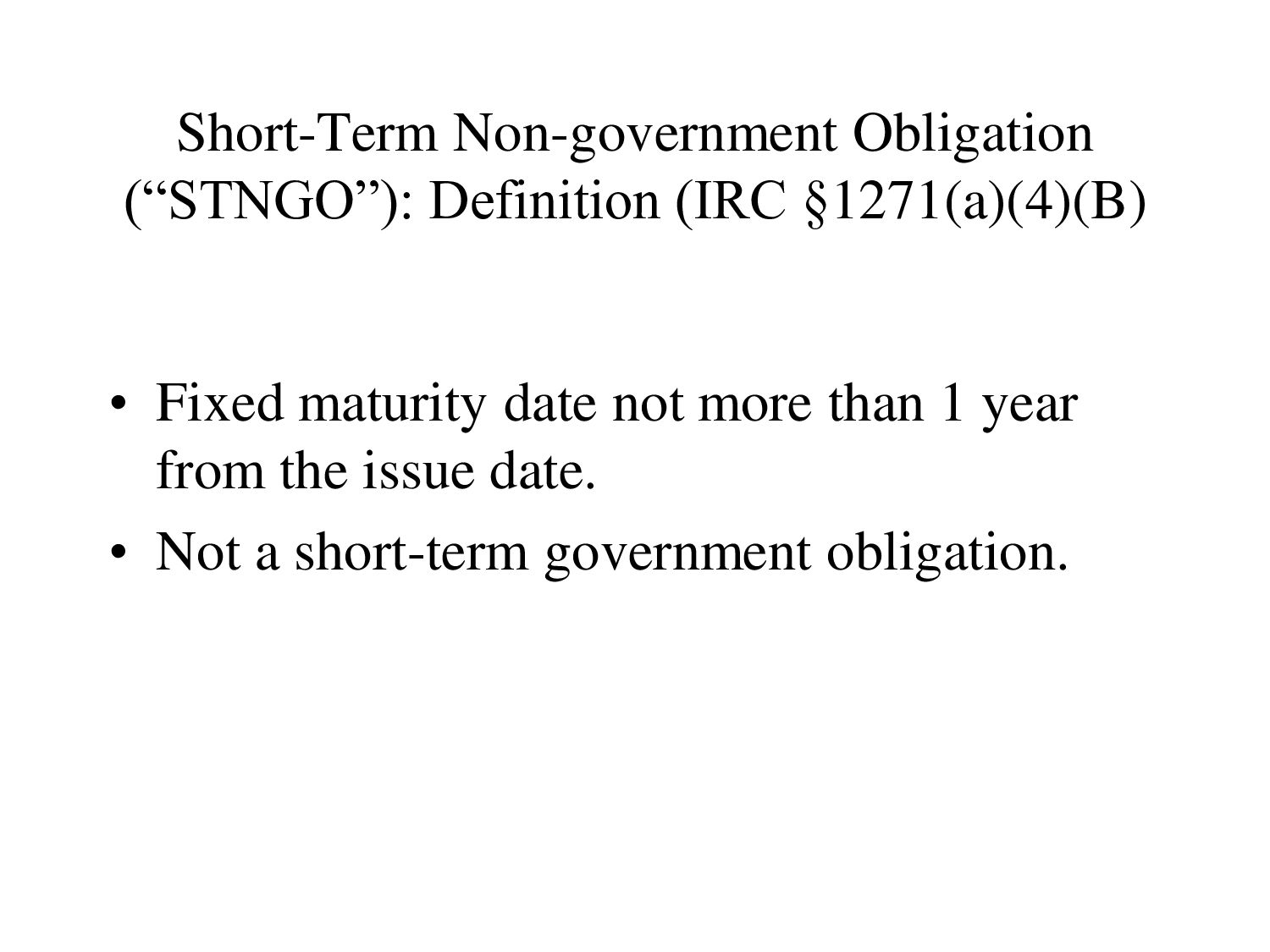 10. Short-Term Non-government Obligation (“STNGO”): Definition (IRC §1271(a)(4)(B) • Fixed maturity