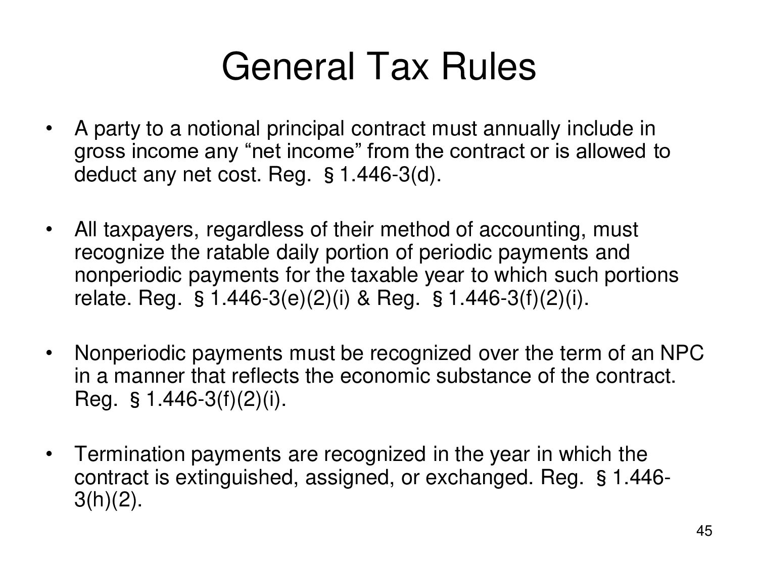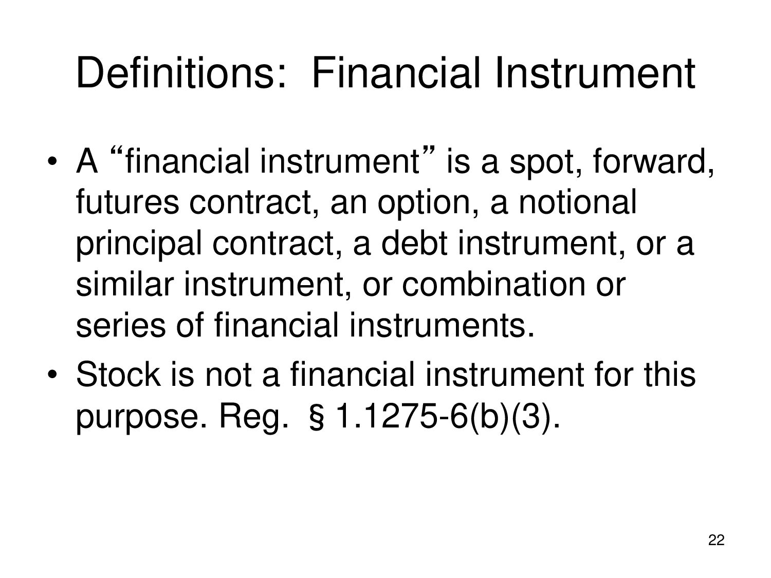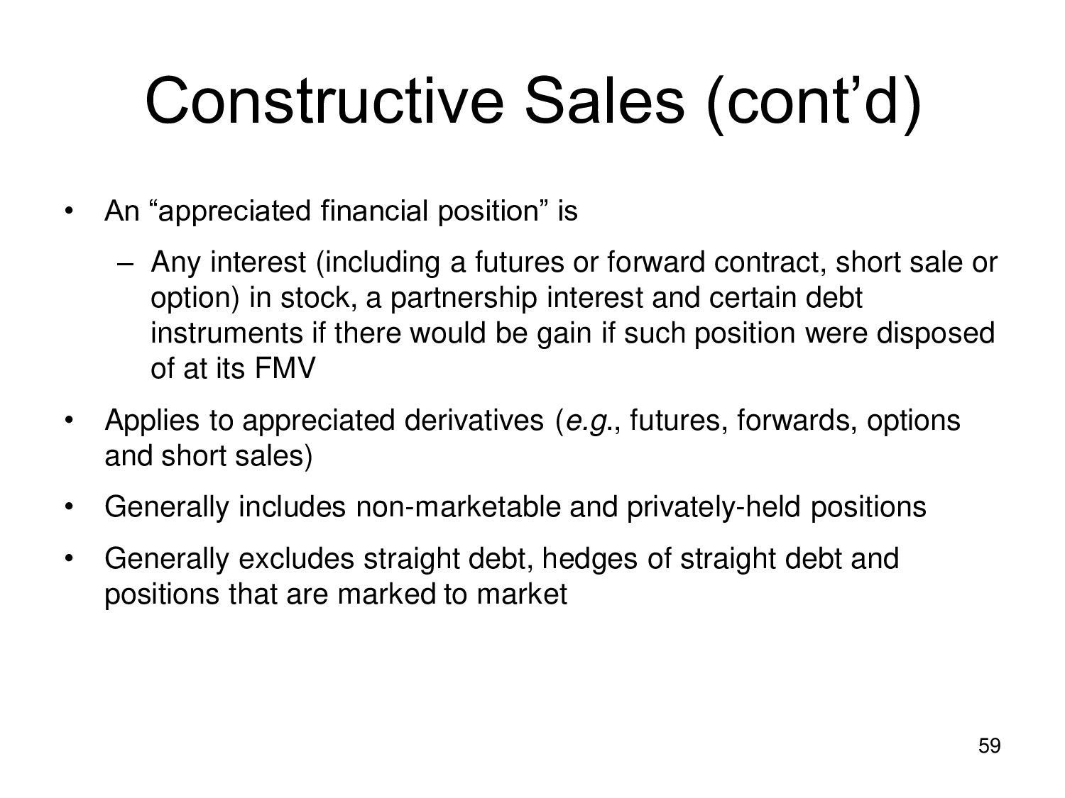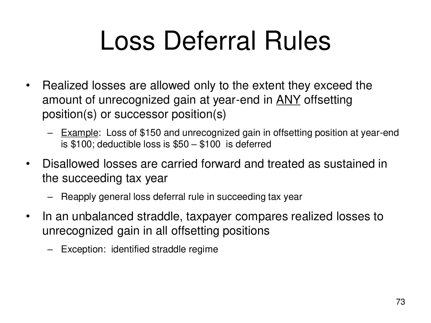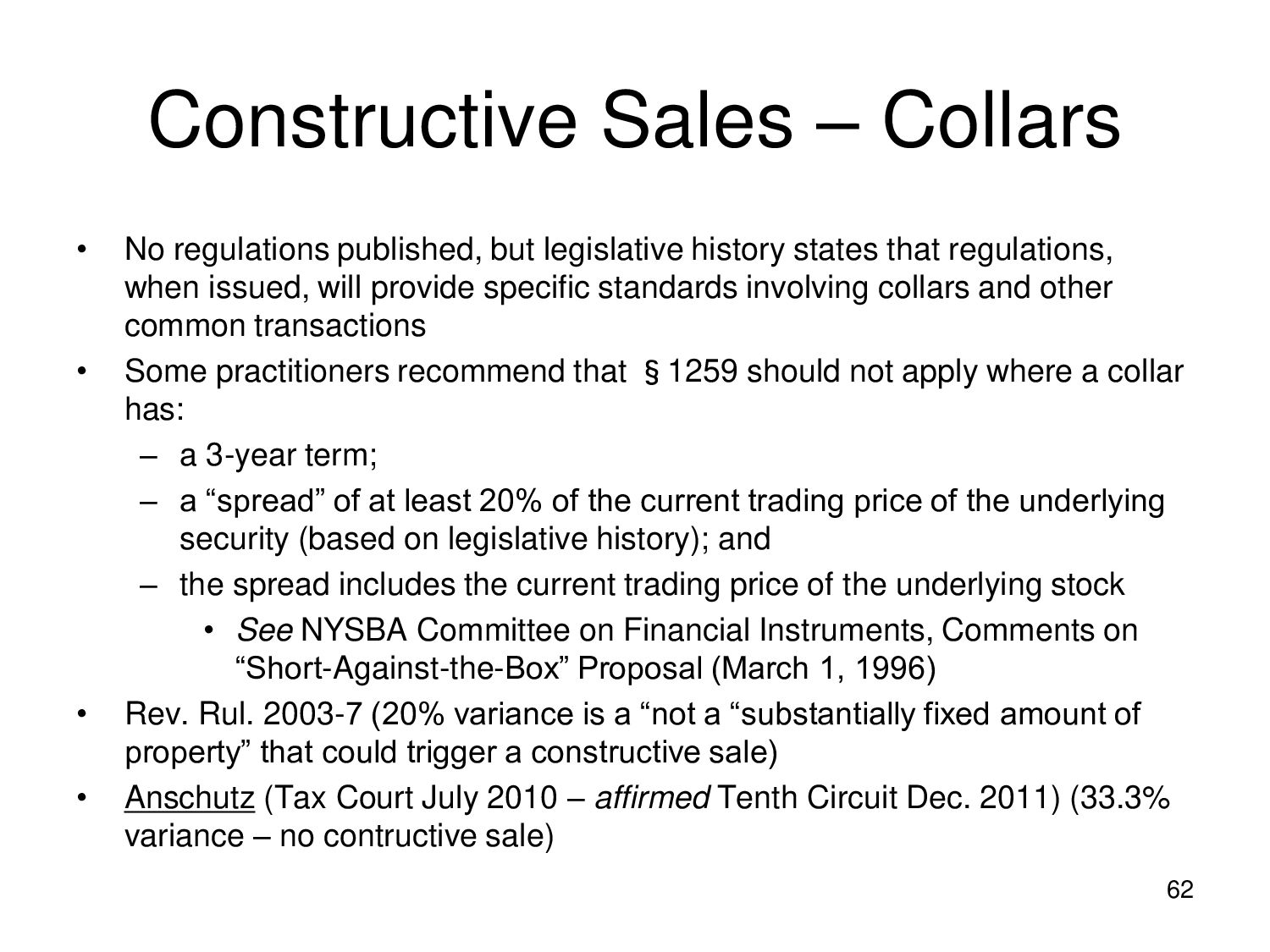 (also used in §§1092, 1233 and 1259) – By analogy, Reg. §1.1233-1(d)(1) sets forth a facts and circumstances test • Securities issued by different corporations generally are not substantially identical, even if they are in the same industry and their securities are responsive to the same winds of economic change • May not be true in the context of reorganizations – Hanlin, 108 F.2d 429, 430 (3d Cir. 1939) • “The words ‘substantially identical’ indicate something less than precise correspondence will suffice to make the transaction a wash sale. . . . [T]he ‘something less’ that is required consists of economic correspondence exclusive of differentiations so slight as to be unreflected in the acquisition and proprietary habits of holders of stocks and securities” – Bonds – authorities have compared call and maturity dates, interest rates, issuers, and types of security, but no precise standards have emerged – Options – IRS has said that the sale of an exchange traded call option at a loss followed by the acquisition of a new option on the same property with the same maturity date (but a different strike price) may be a wash sale (GCM 38285 (1980)) • Contrast with “substantially similar or related property” (“SSRP”) standard used in Reg. §1.246-5 52