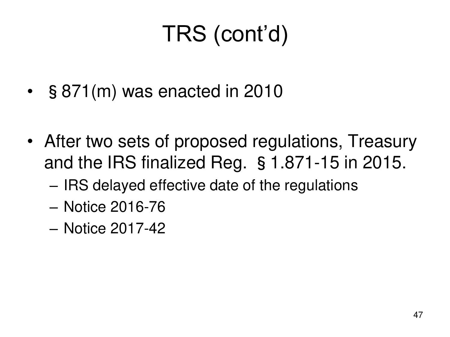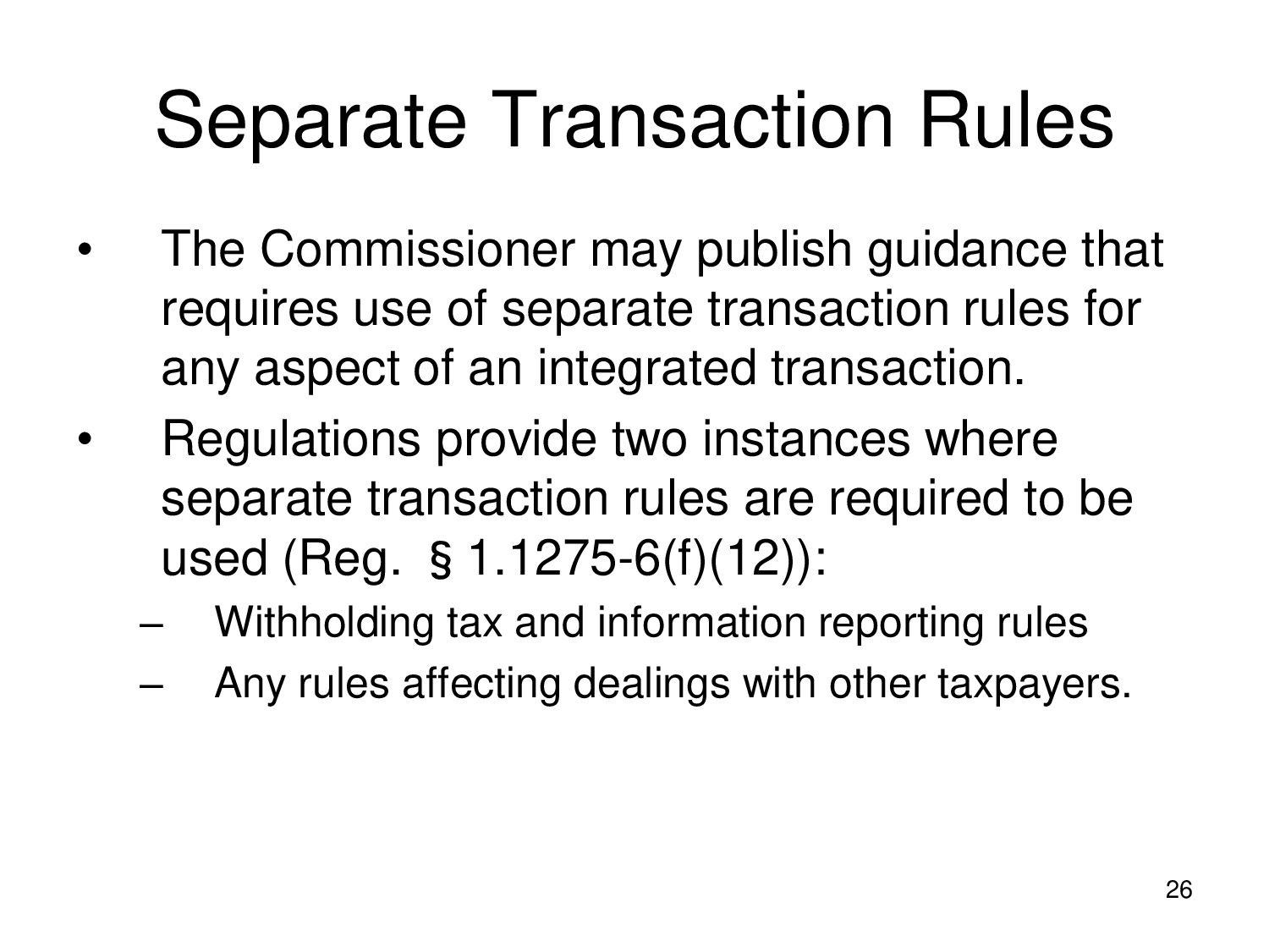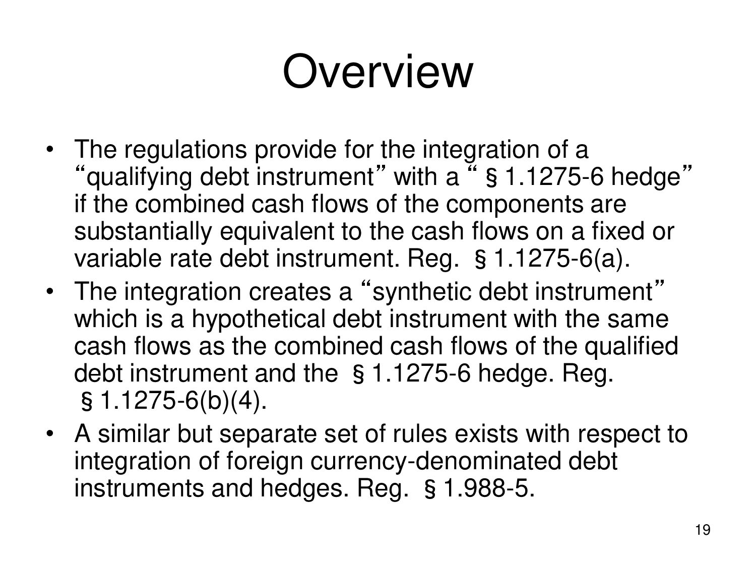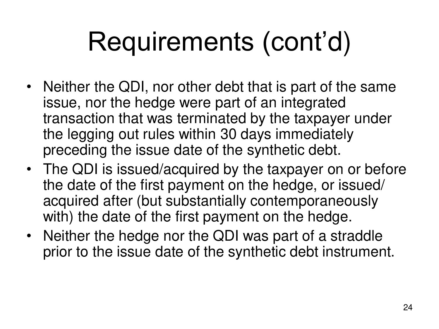 (also used in §§1092, 1233 and 1259) – By analogy, Reg. §1.1233-1(d)(1) sets forth a facts and circumstances test • Securities issued by different corporations generally are not substantially identical, even if they are in the same industry and their securities are responsive to the same winds of economic change • May not be true in the context of reorganizations – Hanlin, 108 F.2d 429, 430 (3d Cir. 1939) • “The words ‘substantially identical’ indicate something less than precise correspondence will suffice to make the transaction a wash sale. . . . [T]he ‘something less’ that is required consists of economic correspondence exclusive of differentiations so slight as to be unreflected in the acquisition and proprietary habits of holders of stocks and securities” – Bonds – authorities have compared call and maturity dates, interest rates, issuers, and types of security, but no precise standards have emerged – Options – IRS has said that the sale of an exchange traded call option at a loss followed by the acquisition of a new option on the same property with the same maturity date (but a different strike price) may be a wash sale (GCM 38285 (1980)) • Contrast with “substantially similar or related property” (“SSRP”) standard used in Reg. §1.246-5 52