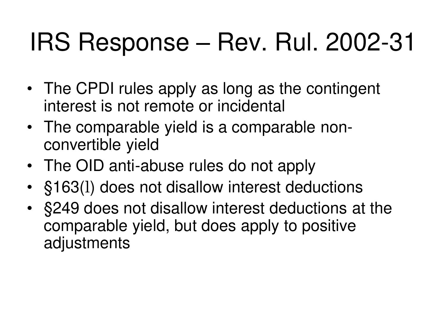 10. IRS Response – Rev. Rul. 2002-31 • The CPDI rules