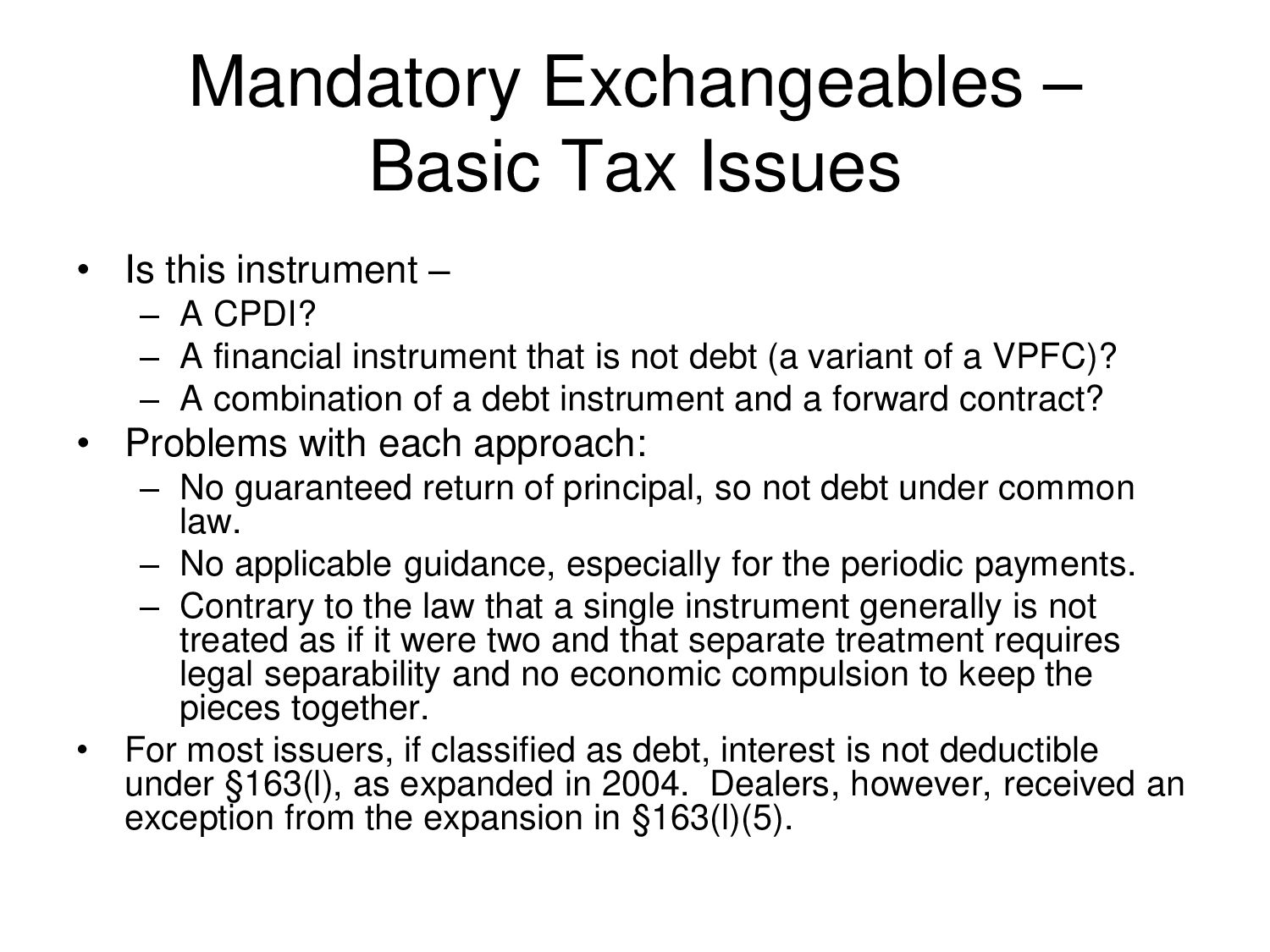 17. Mandatory Exchangeables – Basic Tax Issues • Is this instrument