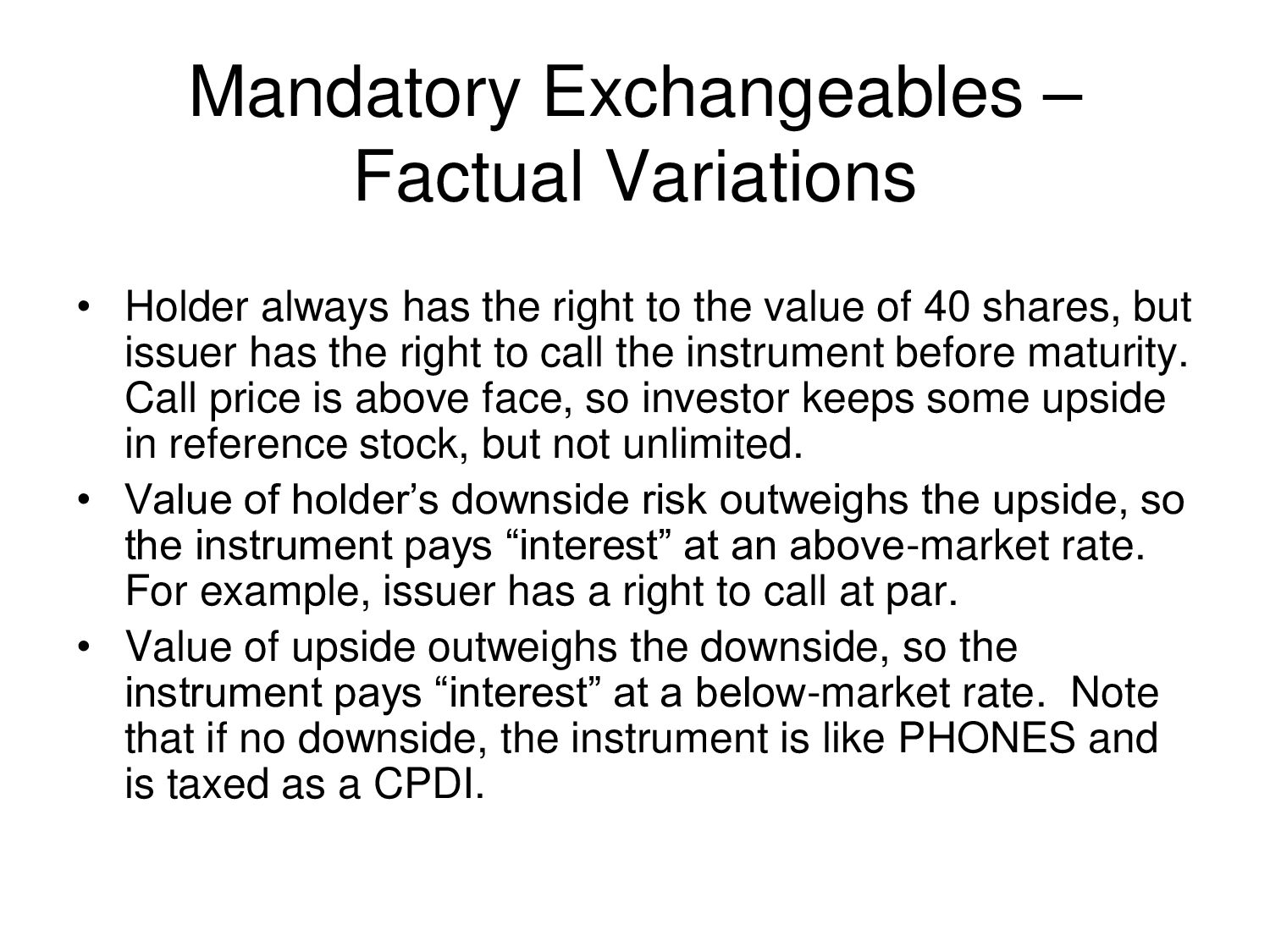 18. Mandatory Exchangeables – Factual Variations • Holder always has the