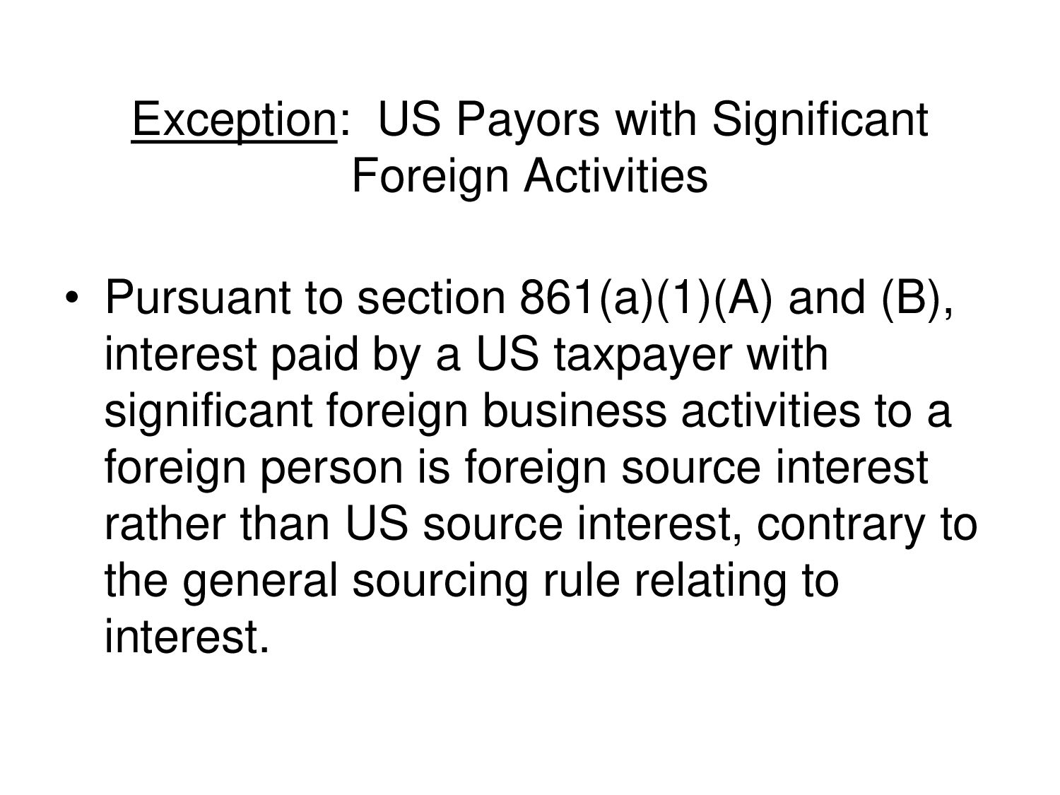 31. Exception: US Payors with Significant Foreign Activities • Pursuant to