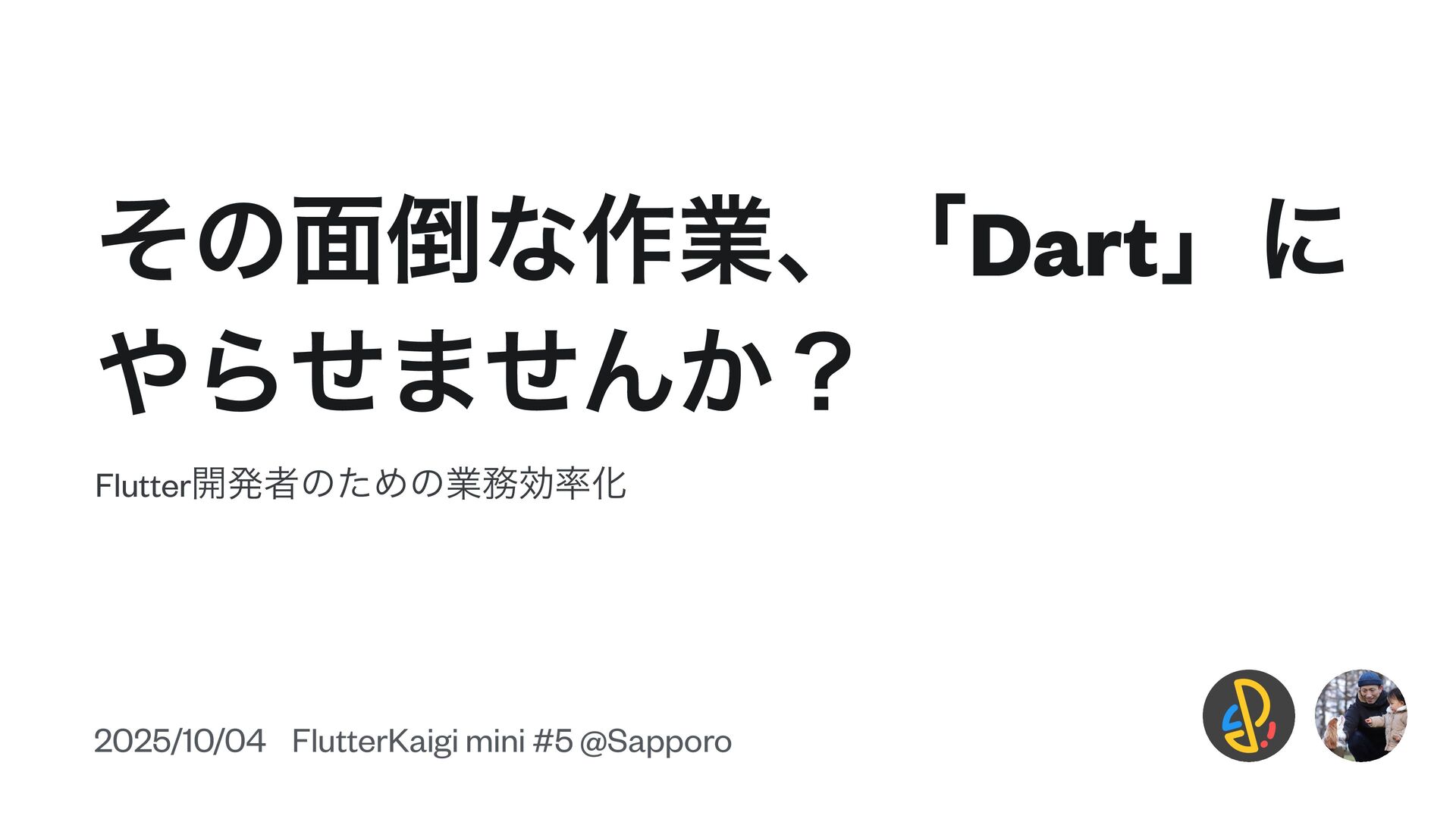 ͦͷ໘ͳ࡞ۀɺʮDartʯʹ Βͤ·ͤΜ͔ʁ Flutter։ൃऀͷͨΊͷۀޮԽ 2025/10/04 FlutterKaigi mini #5 @Sapporo