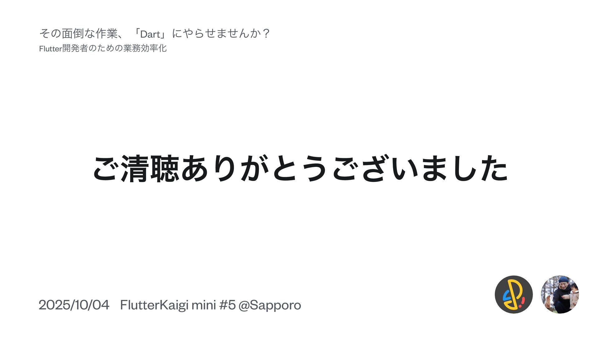 ͝ਗ਼ௌ͋Γ͕ͱ͏͍͟͝·ͨ͠ 2025/10/04 FlutterKaigi mini #5 @Sapporo ͦͷ໘ͳ࡞ۀɺʮDartʯʹΒͤ·ͤΜ͔ʁ Flutter։ൃऀͷͨΊͷۀޮԽ