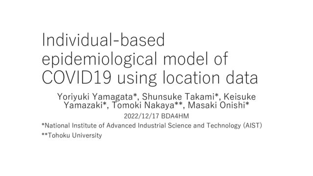 ' 234 5 𝑰. 167 𝑘, 𝑑 , 1 1 + 𝑁 )) 𝑰. 167 𝑘, 𝑑 ~Binomial( ' 8 96:;1 . 𝑰167 𝑘, 𝑖, 𝑑 , 𝑞) 𝑝: a prefecture, 𝑰. /01[𝑑]: observed new infection at a prefecture 𝑝, 𝑁: num. of simulation (=30), 𝑞: reporting rate (assumed =0.5) 𝑰167 𝑘, 𝑖, 𝑑 : simulated new infection in metapopulation 𝑖, day 𝑑, simulation 𝑘 Bayesian optimization is used to find optimal β