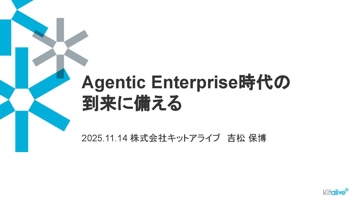 Agentic Enterprise時代の 到来に備える 2025.11.14 株式会社キットアライブ 吉松 保博