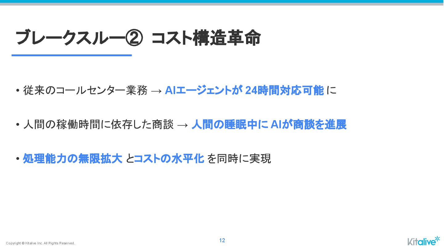 Copyright © Kitalive Inc. All Rights Reserved. ブレークスルー② コスト構造革命 •