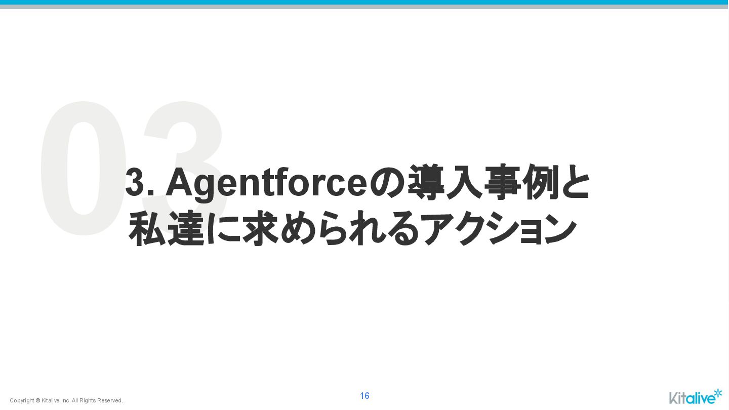 Copyright © Kitalive Inc. All Rights Reserved. 03 3. Agentforceの導入事例と