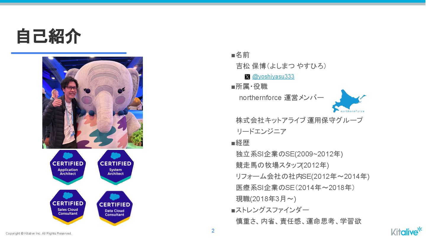 やすひろ) @yoshiyasu333 ▪所属・役職 northernforce 運営メンバー 株式会社キットアライブ 運用保守グループ リードエンジニア ▪経歴 独立系SI企業のSE(2009~2012年) 競走馬の牧場スタッフ(2012年) リフォーム会社の社内SE(2012年~2014年) 医療系SI企業のSE(2014年~2018年) 現職(2018年3月~) ▪ストレングスファインダー 慎重さ、内省、責任感、運命思考、学習欲 自己紹介 2