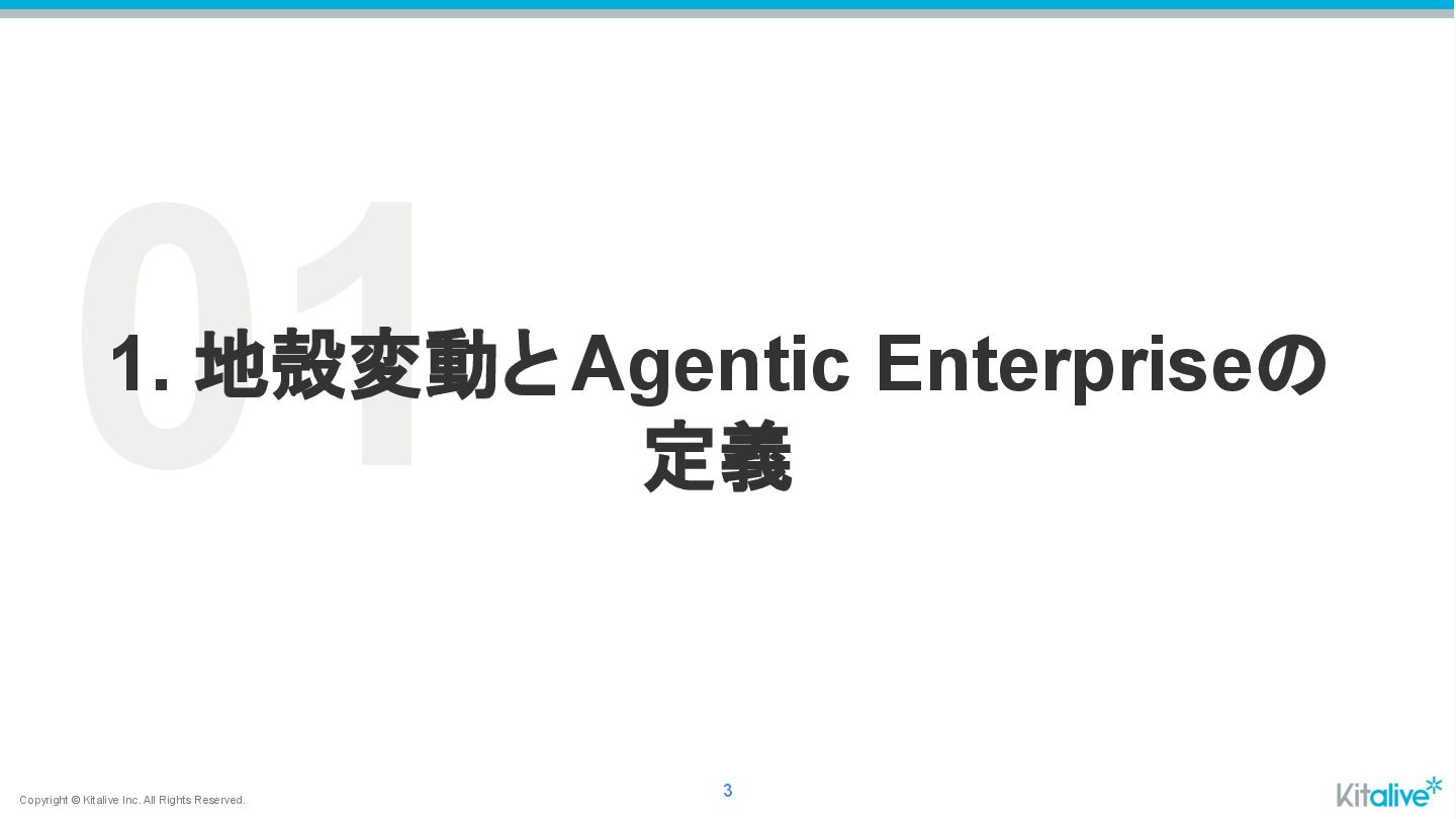 Copyright © Kitalive Inc. All Rights Reserved. Agenda 1 地殻変動とAgentic