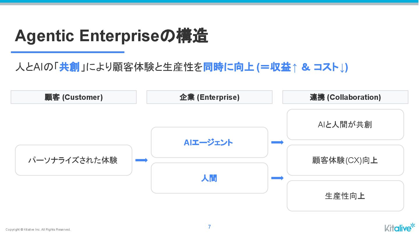 Copyright © Kitalive Inc. All Rights Reserved. Agentic Enterpriseの構造 人とAIの「共創」により顧客体験と生産性を同時に向上